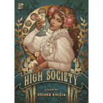 In Reiner Knizia's High Society, players bid against each other to acquire the various trappings of wealth (positive-number and multiplier cards) while avoiding its pitfalls (negative number and divisor cards). While bidding, though, keep an eye on your remaining cash - at the end of the game, even though all those positive-number cards might add up to a win, the player with the least money isn't even considered for victory.